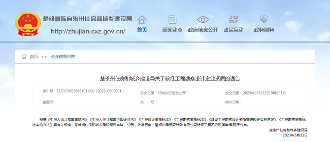 近日,楚雄彝族自治州住房和城鄉建設局發布了關于核準云南廣廈規劃建筑設計院有限公司橋梁工程乙...